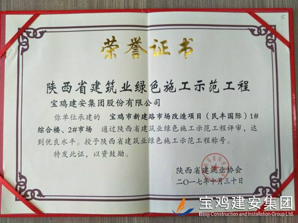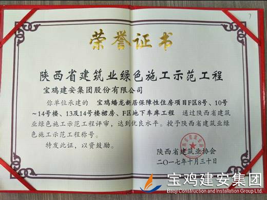 2018年1月26日在西安召開了陜西省建筑業(yè)協(xié)會第六屆二次理事會議,我公司承建的科研生產(chǎn)試驗(yàn)大樓、寶雞蟠龍新居SF05標(biāo)段,高新五路明星佳苑、新建路市場改造項(xiàng)目(民豐國際)、中聯(lián)國際廣場項(xiàng)目,在2017年度綠色施工評審過程中,達(dá)到優(yōu)良水平,被授予陜西省建筑業(yè)綠色施工示范工程稱號。 此次榮譽(yù)的獲得離不開公司各職能部室的指導(dǎo)與項(xiàng)目部的辛勤努力,項(xiàng)目部能緊跟建筑行業(yè)發(fā)展的大方向,不斷加強(qiáng)綠色施工過程管理的學(xué)習(xí),在施工過程中圍繞著“四節(jié)一環(huán)保”理念,堅持走節(jié)能降耗,增效降本,可持續(xù)發(fā)展的施工道路,最終取得了可喜的成績。 公司綠色施工整體水平近年來得到顯著提高,希望各項(xiàng)目部在2018年的施工過程中,以文明施工,綠色施工標(biāo)準(zhǔn)嚴(yán)格要求自己,力爭在施工管理方面取得更高的成績。