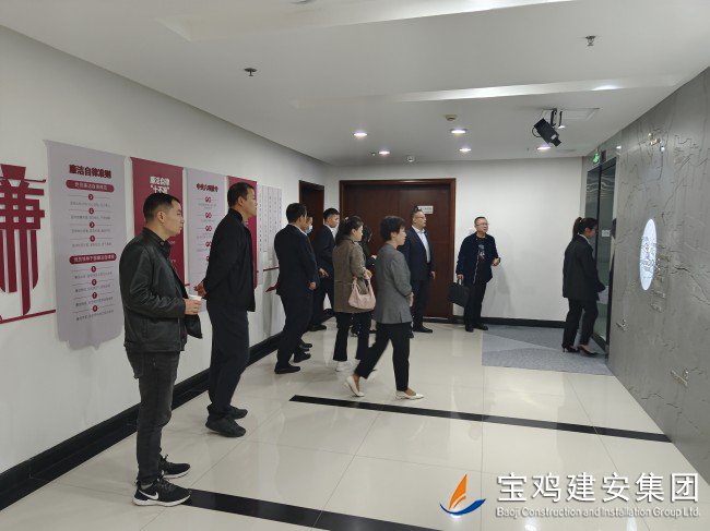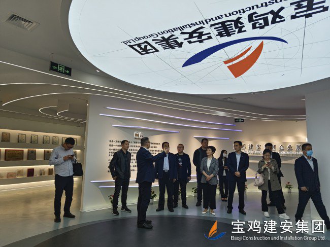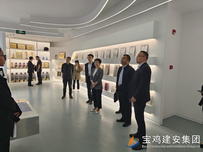 在公司總經(jīng)理胥永寧等集團領(lǐng)導(dǎo)的陪同下,考察團一行前往寶雞建安大廈,觀看企業(yè)宣傳片,了解集團經(jīng)營產(chǎn)業(yè)概況。代表團一行還參觀了公司23樓體育健身設(shè)施場館及職工文化娛樂配套項目;在建安大廈22樓企業(yè)展廳里,嘉賓們仔細(xì)觀看了陳列在此的企業(yè)榮譽成績、代表性工程及歷史實物,在胥總和展廳講解員的引導(dǎo)和解說下,代表團一行全面了解了寶雞建安集團六十年輝煌歷史,以及集團在推動寶雞城建事業(yè)中所做出的卓越貢獻和重要地位。