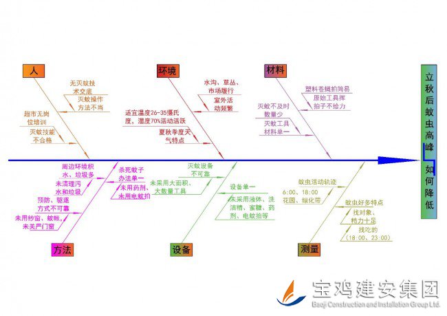 上海大潤(rùn)發(fā)超市的一位清管員浦賽紅,干了一件有點(diǎn)雞毛蒜皮但也算不上驚天動(dòng)地的大事!滅蚊整整13年,研究出一套“蚊子兵書(shū)”,一年不同季節(jié),一天不同時(shí)間段,蚊子的生活習(xí)性、活動(dòng)范圍、滅殺招數(shù),掌握得明明白白,有她在的店,夏天光腿進(jìn)去站上半小時(shí),都沒(méi)有一只蚊子來(lái)叮咬。為此,我們對(duì)這篇讓1.8億人贊嘆的報(bào)道做了深入研讀,利用“頭腦風(fēng)暴法”,集體展開(kāi)討論,充分發(fā)揚(yáng)民主,各抒己見(jiàn),集思廣益,全面分析,每個(gè)人發(fā)表觀點(diǎn)與感想,我們都大受震撼。卻發(fā)現(xiàn)了一個(gè)不爭(zhēng)的事實(shí)!掌握和運(yùn)用行之有效的統(tǒng)計(jì)方法,提高工作效率。這位清管員其實(shí)在不經(jīng)意間運(yùn)用了一種科學(xué)的統(tǒng)計(jì)方法:因果圖法!見(jiàn)下圖: