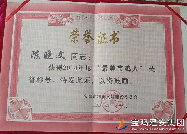 一年一度的“五一”國際勞動節(jié)到來之際,從寶雞市總工會傳來喜訊, “2024年度寶雞市五一勞動獎?wù)隆毕冗M名單正式確定,我司安裝分公司先后擔任平?jīng)龈淮簣@及西寧長島(宗地三十六)項目一期一標段安裝電氣施工員的陳曉文同志榜上有名,受到通報嘉獎! 陳曉文同志,1998年畢業(yè)于寶雞技師學院土建專業(yè),作為一名一線員工,多年以來,他深知理論知識的重要性,利用業(yè)余閑暇時間,不斷學習土建安裝電氣專業(yè)課程。憑借著不懈的努力和刻苦鉆研,他于2015年通過了二級建造師考試,繼而于2020年通過了一級建造師考試,連續(xù)取得了機電、市政、公路證書。 陳曉文同志長期工作在施工一線,勤勤懇懇、兢兢業(yè)業(yè),以勤奮努力的工作熱忱和扎實細致的工作作風,贏得了公司上下的一致好評,他所帶領(lǐng)的班組2014、2015、2016年連續(xù)被評為優(yōu)秀班組。其本人也曾于2014年被寶雞市文明委授予“最美寶雞人”榮譽稱號。 |